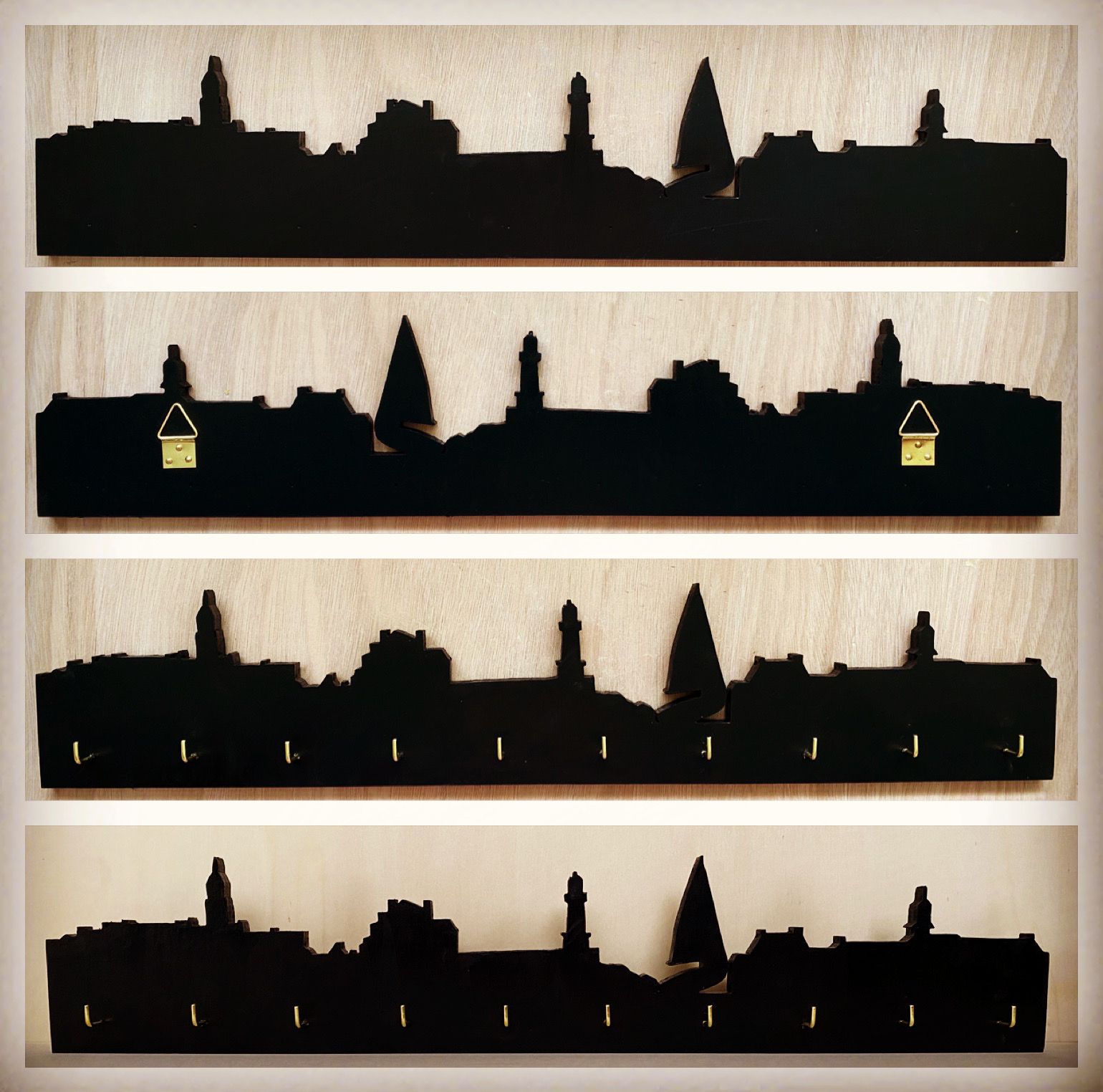 Je fabrique de mes petites mains des : dessous de plats, formes murales sur-mesure (cerf, rose des vents, coquille saint-jacques, croix basque, croix scoutes, croix occitane, ...), "ronds" de serviette, miroirs, avions décoratifs ou petits rangements ...