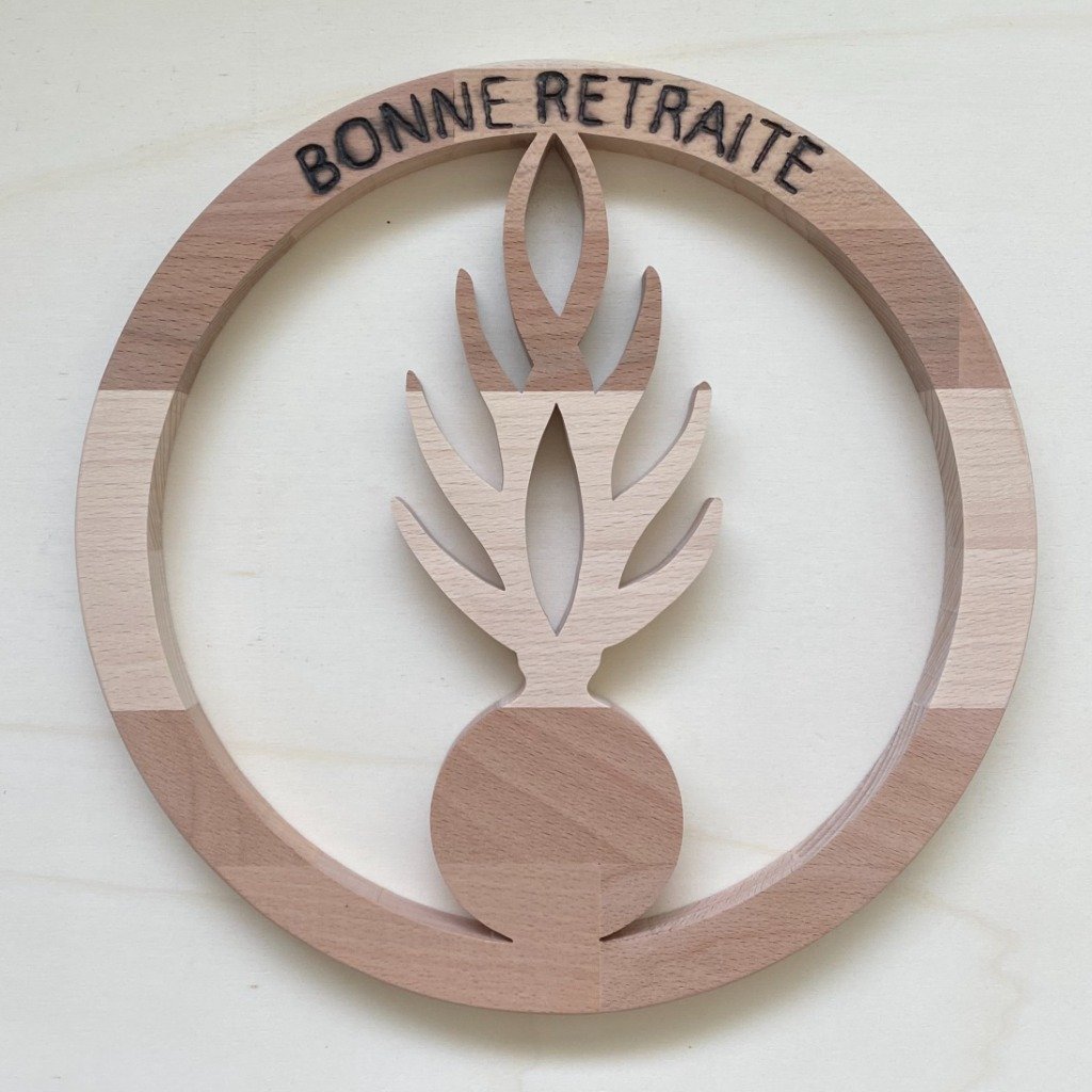 Insigne béret infanterie en bois d'hévéa pyrogravée